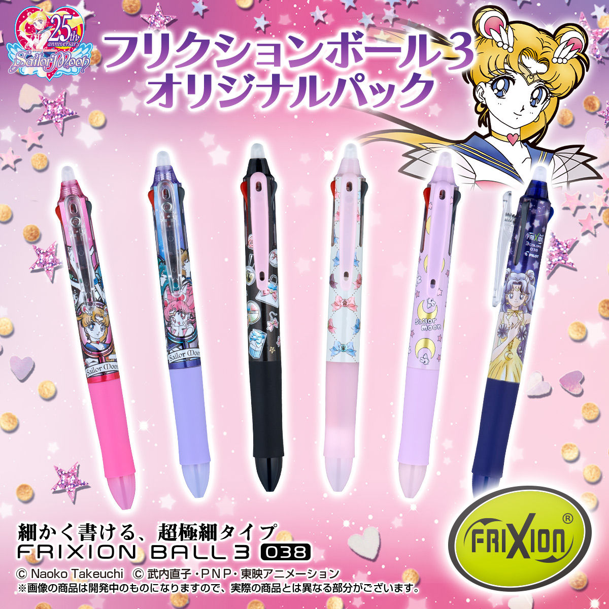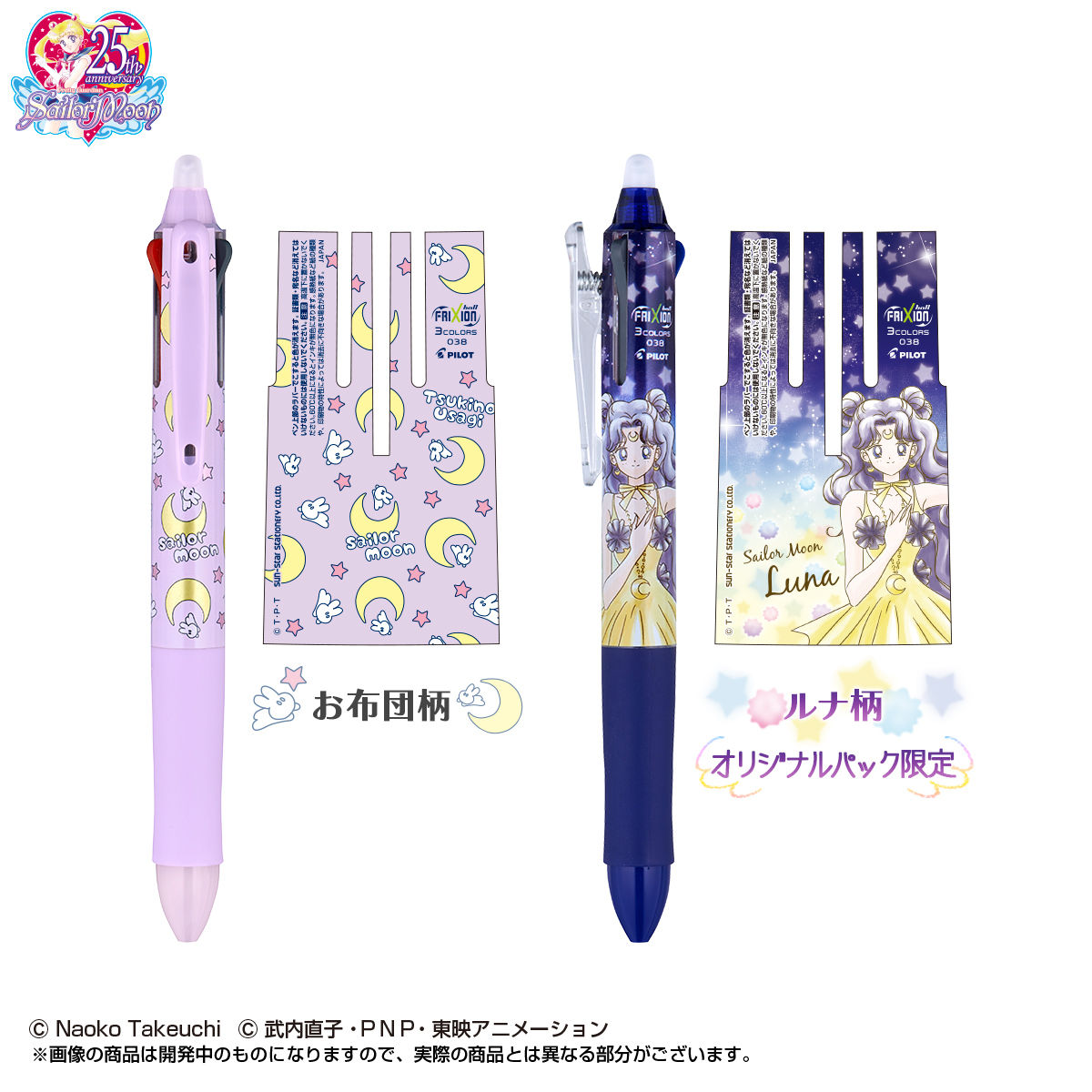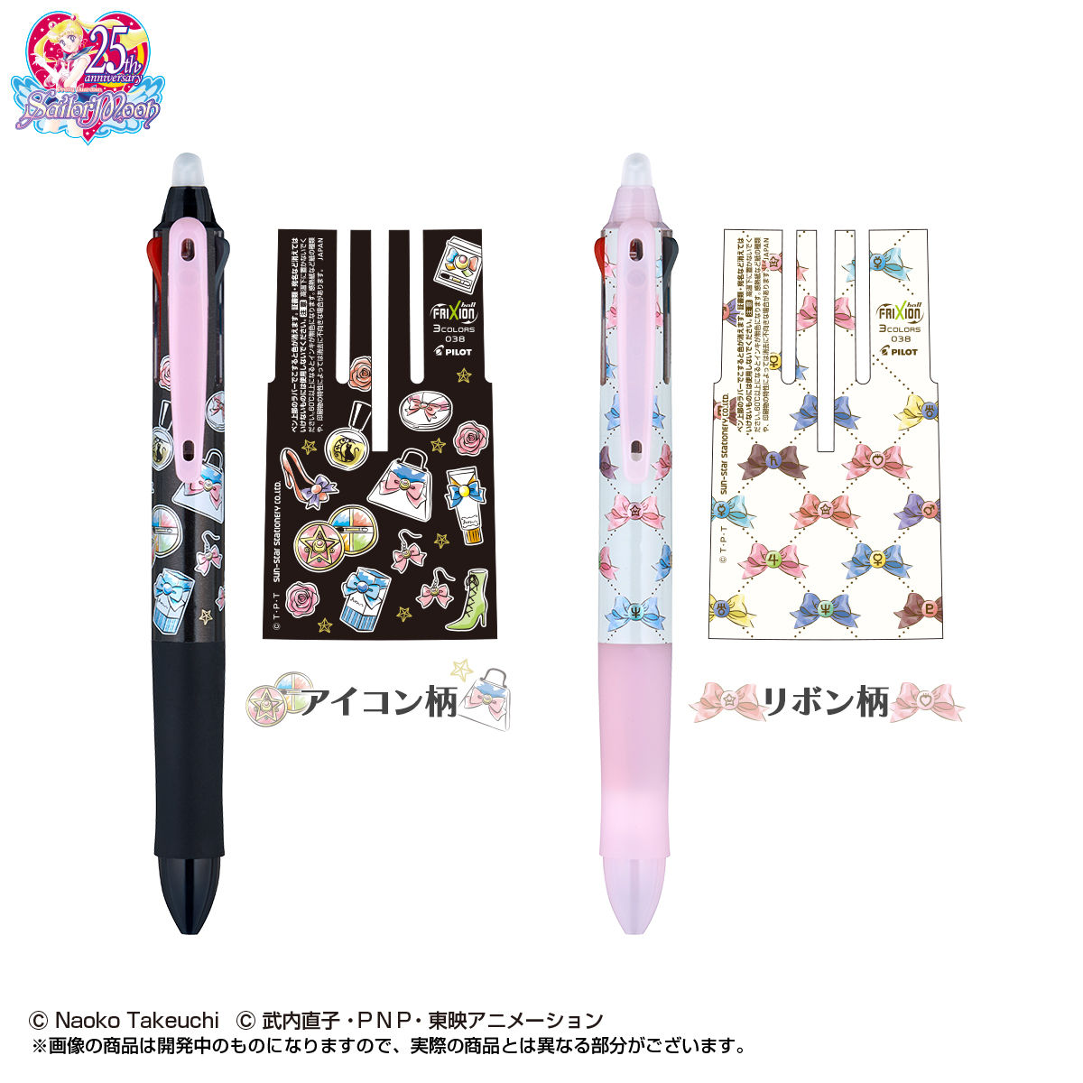 Wśród trójkolorowych wymazywalnych długopisów z serii Frixion Ball pojawią się nowe wzory. Będą to inner senshi, outer senshi i Chibi Moon, icon, ribbon, pościel Usagi oraz Luna. Ostatni wzór jest wzorem limitowanym i występuje jedynie przy zakupie całego