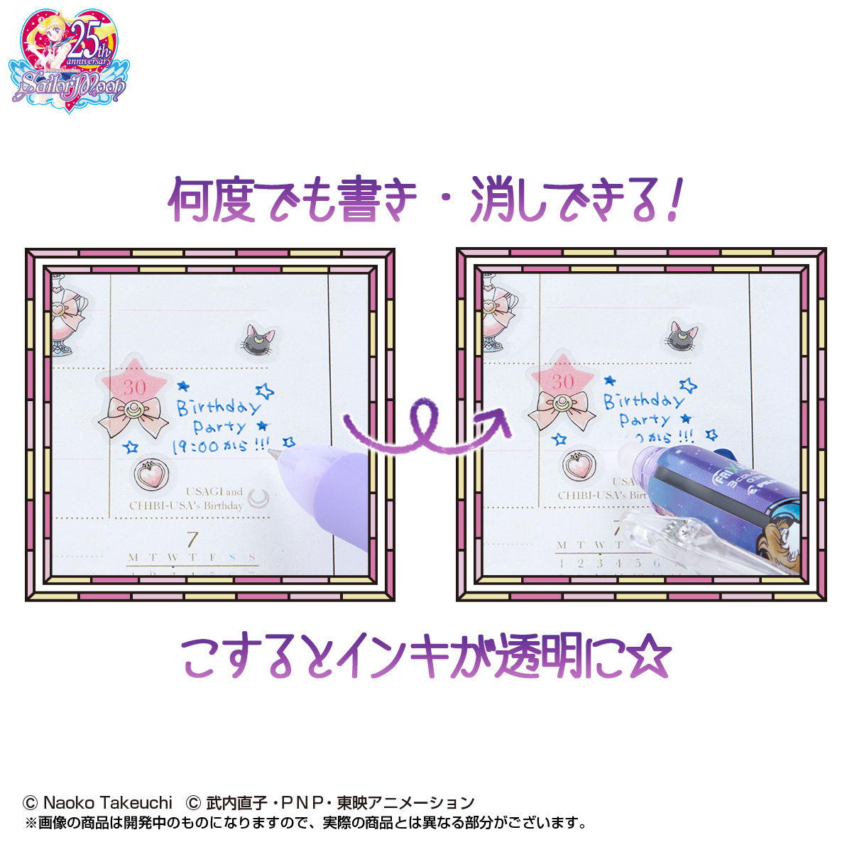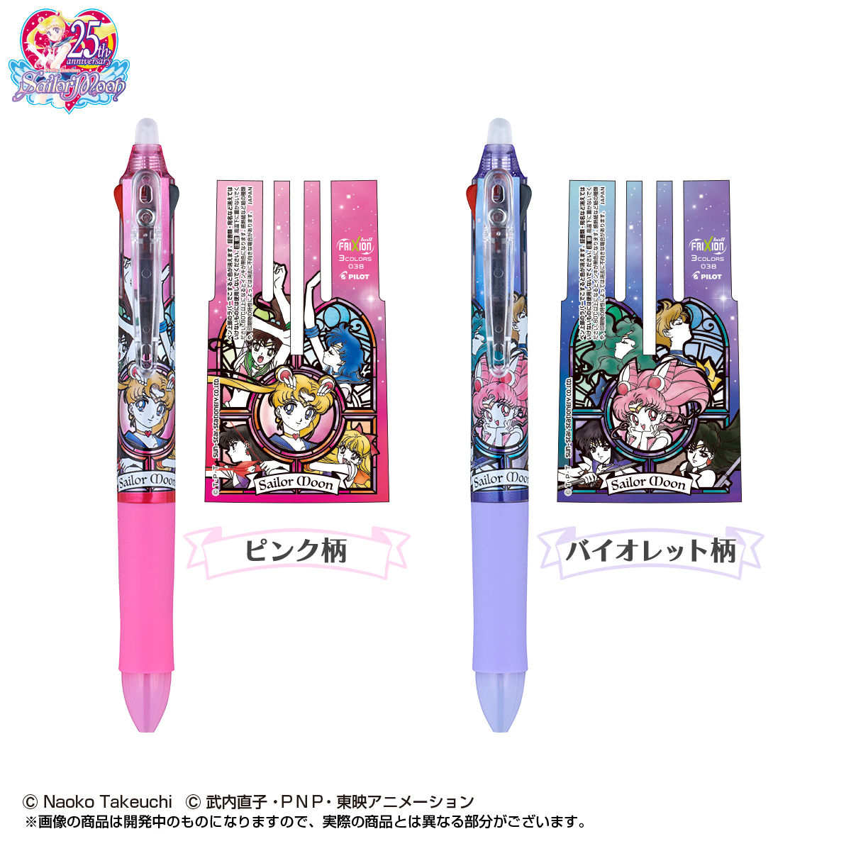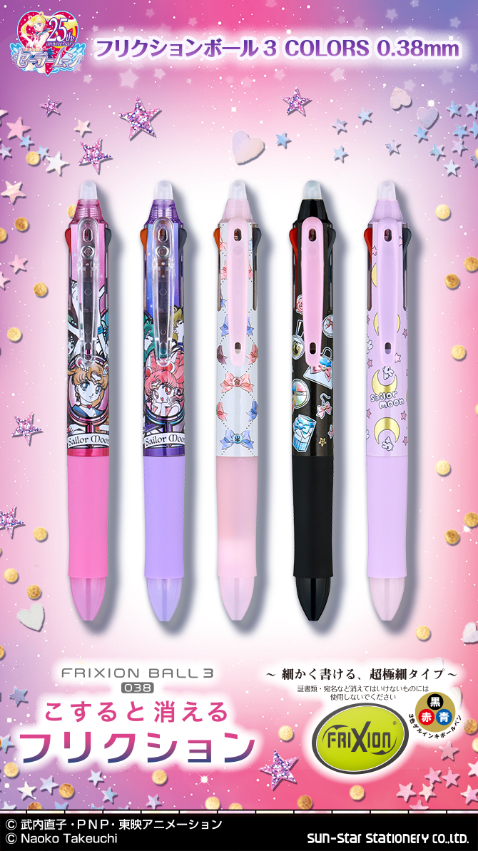 Wśród trójkolorowych wymazywalnych długopisów z serii Frixion Ball pojawią się nowe wzory. Będą to inner senshi, outer senshi i Chibi Moon, icon, ribbon, pościel Usagi oraz Luna. Ostatni wzór jest wzorem limitowanym i występuje jedynie przy zakupie całego