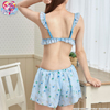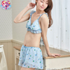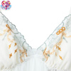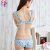 Komplet biustonosz z figami ozdobiony jest falbankami, a biustonosz ma wyjmowane wkładki push-up. Cena kompletu to 5076 jenów (ok. 171 zł).