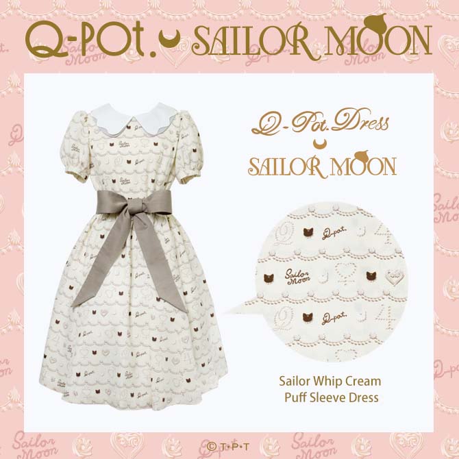 Sailor Whip Cream Puff Sleve Dress - sukienka z krótkim rękawem i kokardą; jasna; wzór ma przypominać bitą śmietanę; 40500 jenów (ok. 1417 zł).
