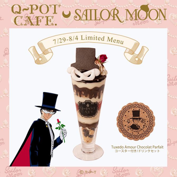 W menu kawiarni od 29 lipca do 4 sierpnia pojawi się Tuxedo Amour Chocolat Parfait, deser inspirowany Tuxedo Kamen z sernikiem na zimno i musem herbacianym polany sosem kawowym i czekoladowym. Cena to 2500 jenów (ok. 88 zł).