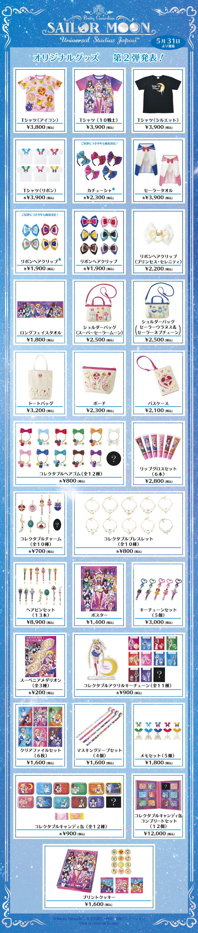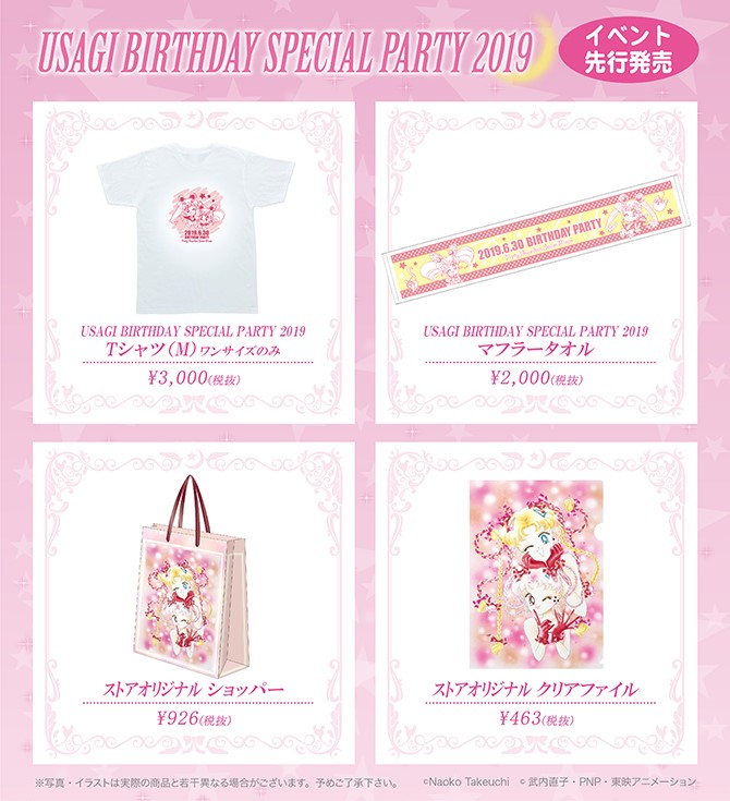Zapowiedziane dzisiaj produkty będą dostępne podczas eventu 30 czerwca, a od 1 lipca w Sailor Moon Store. Wcześniejsze 4 produkty od 1 lipca pojawią się w sprzedaży poprzez fanklub, a od 11 lipca w Sailor Moon Store.