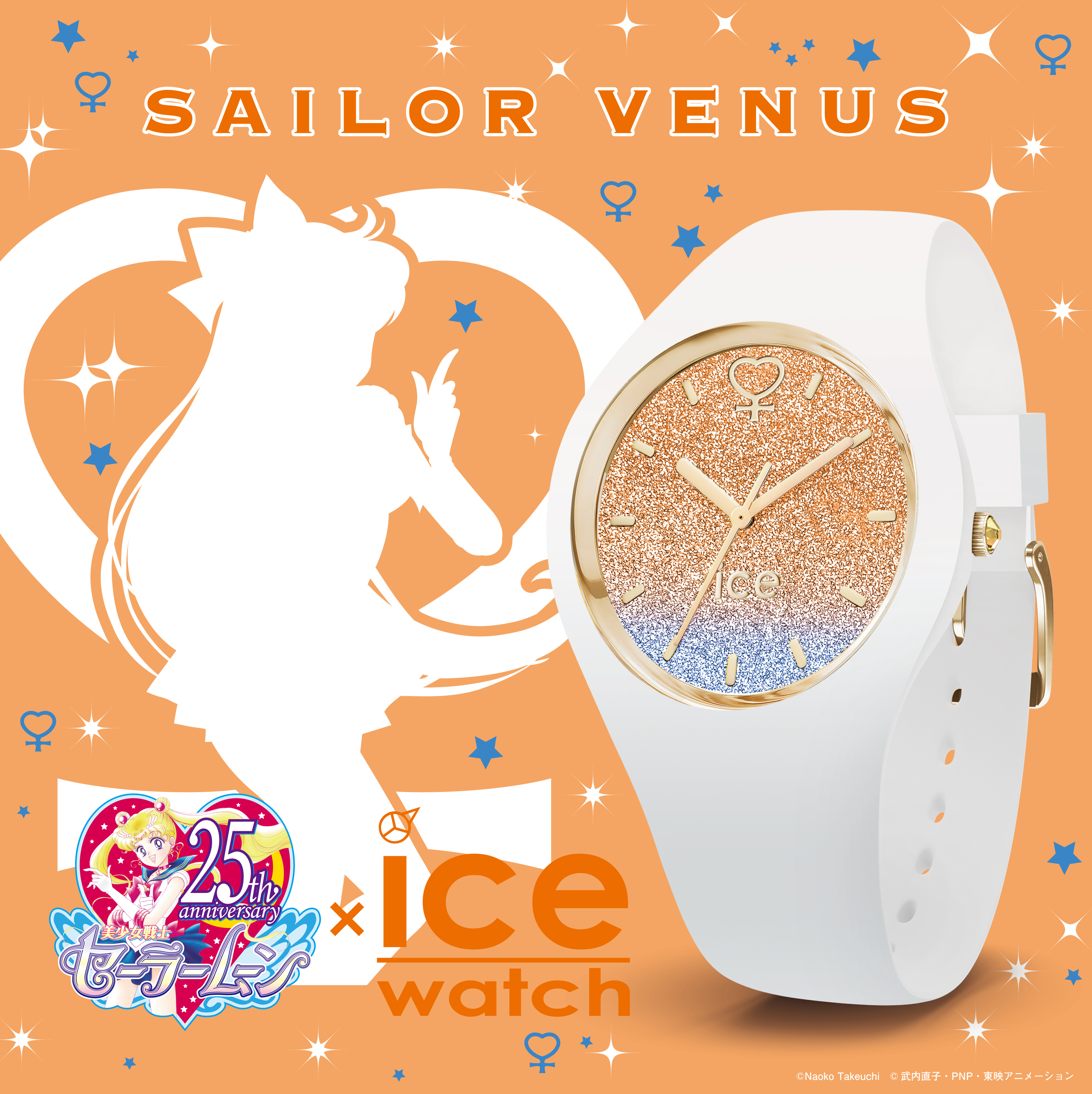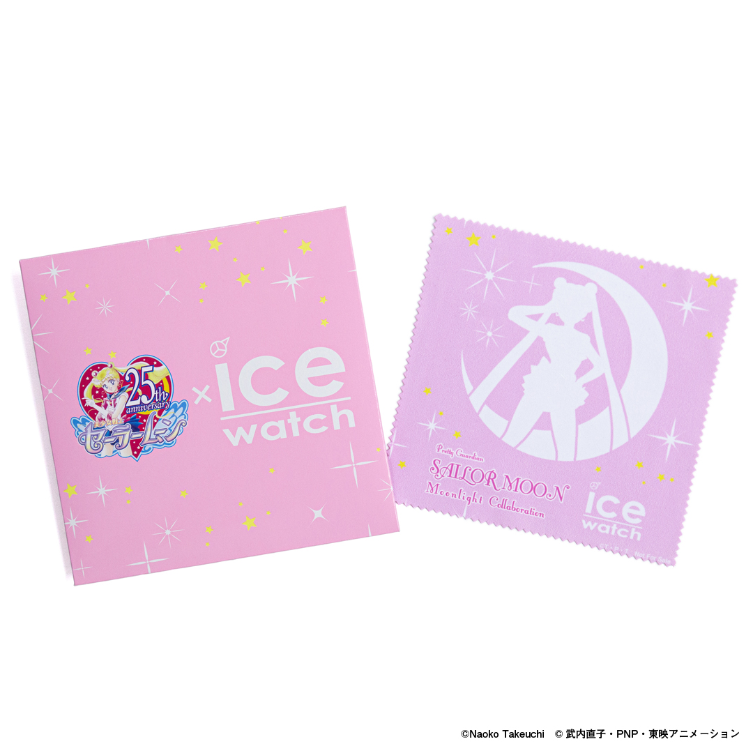 We współpracy z Ice Watch pojawią się białe zegarki kwarcowe z kolorowymi tarczami. Do wyboru są tarcze w 5 wersjach kolorystycznych inner senshi. Tarcze są dwukolorowe i połyskujące, jeden kolor stopniowo przechodzi w drugi. Paski są białe, wykonane