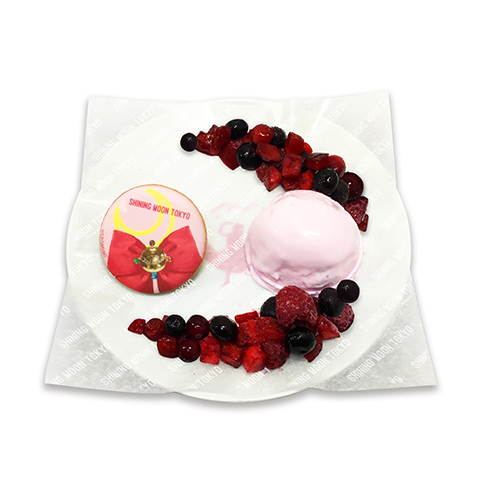 Strawberry Moon Ice Cream - lody truskawkowe z owocami jagodowymi i jeżynowymi oraz z lukrowanym ciastkiem; 1500 jenów (ok. 53 zł); w zestawie oryginalny talerz.