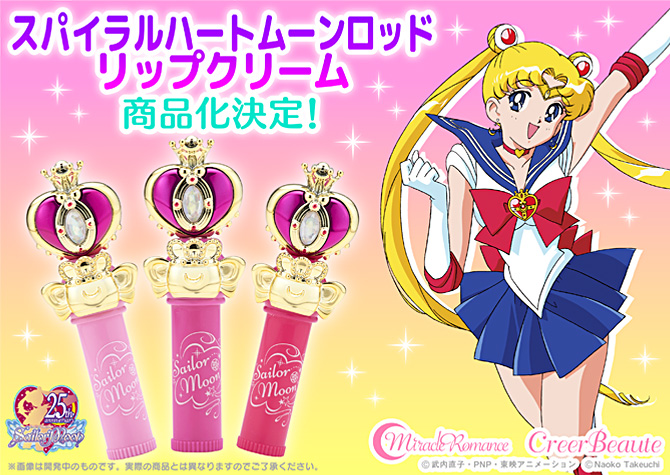 Pomadki ochronne w opakowaniach z końcówką Spiral Heart Moon Rod. Do wyboru są 3 kolory: burgundy rose, cherry red i strawberry pink. W sprzedaży pojawią się w październiku. Cena za sztukę to 1058 jenów (ok. 38 zł). Więcej szczegółów pojawi się w późniejszym