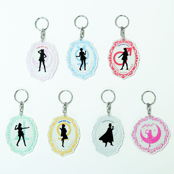 dwie wielkości 5,4 cm; 900 jenów (ok. 33 zł). - akrylowe breloki w kształcie serca - do wyboru 5 wzorów, każdy z butem i kokardą innej inner senshi; wielkość 6 cm; 1300 jenów (ok. 47 zł) za sztukę. - akrylowe breloki z sylwetkami