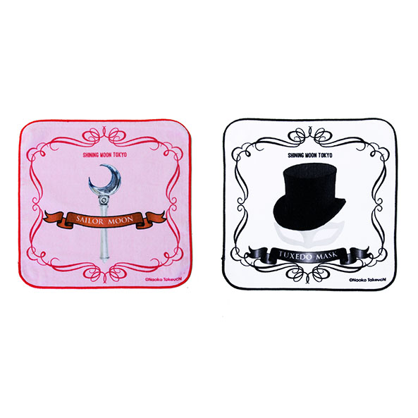 - do wyboru 7 wzorów, 5 z inner senshi, z Tuxedo Kamen i z sylwetką z ilustracji promującej restaurację; wielkość 9 cm; 1300 jenów (ok. 47 zł) za sztukę. - ręczniki do rąk w rozmiarze S - do wyboru 9 wzorów, z kokardami inner senshi,