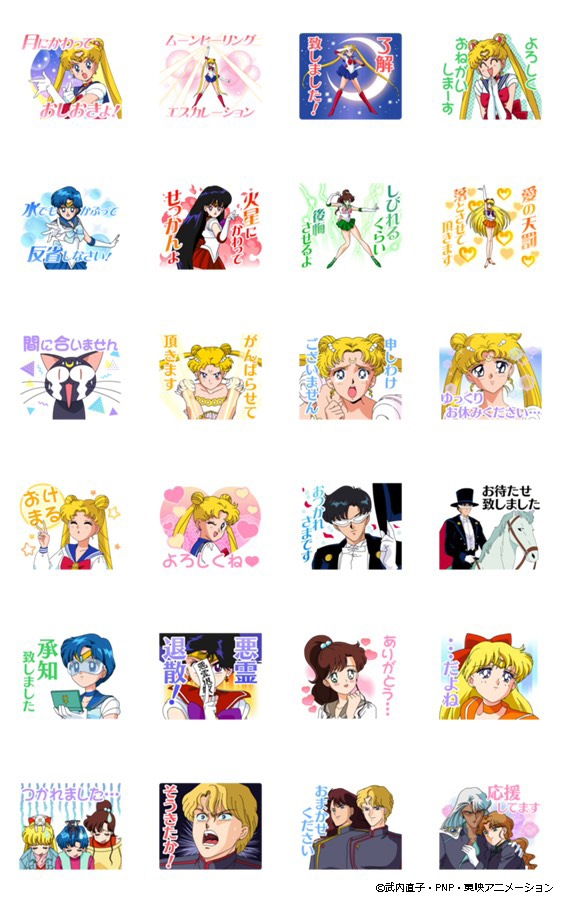 Od dzisiaj dostępne są w komunikatorze LINE naklejki ze wzorami z pierwszej serii Sailor Moon. Cena za zestaw to 240 jenów (ok. 9 zł).