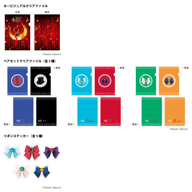 Jupiter i Venus; 1000 jenów za zestaw (ok. 36 zł). - naklejki z kokardami inner senshi - do wyboru 5 wzorów; 400 jenów za sztukę (ok. 14 zł).