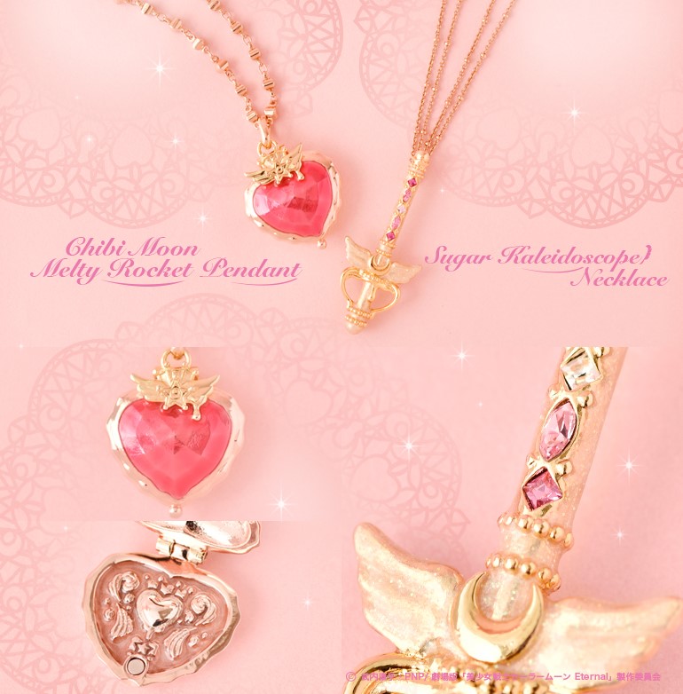 Chibi Moon Melty Rocket Pendant - naszyjnik z broszką Super Sailor Chibi Moon, zawieszka jest otwierana i pokazuje wnętrze broszki; 23100 jenów (ok. 889 zł).