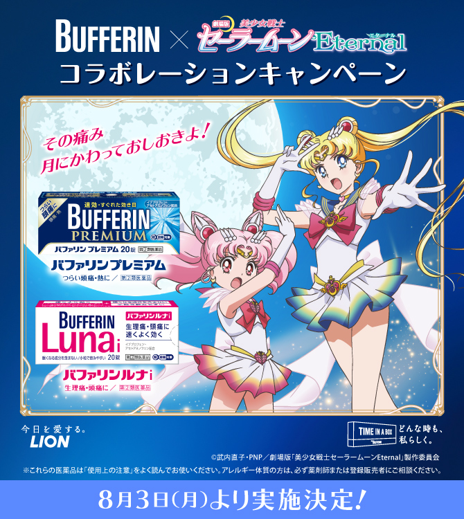 Pojawi się kolejna kampania we współpracy z Bufferin. Planowane są loteria z nagrodami oraz reklamy ze współpracową grafiką. Więcej szczegółów zostanie ujawnionych 3 sierpnia na oficjalnej stronie Sailor Moon oraz na specjalnej stronie, przygotowanej