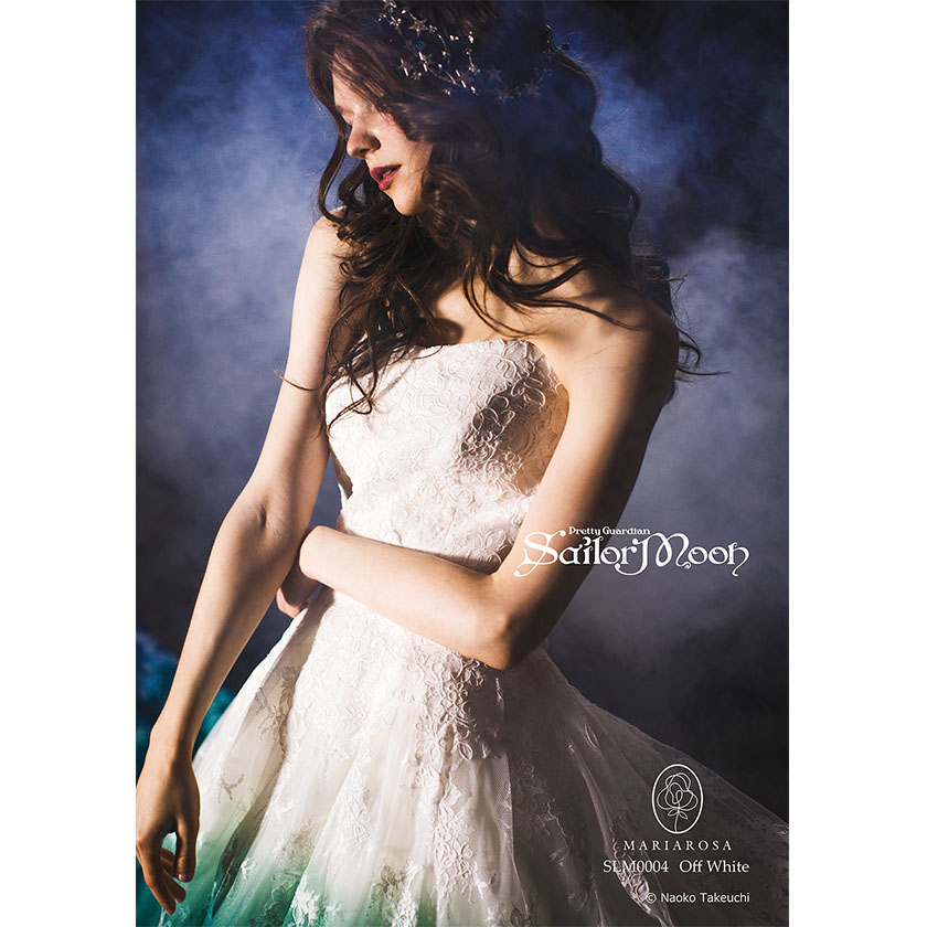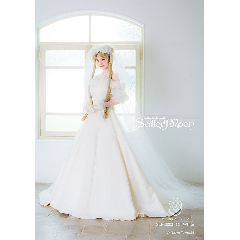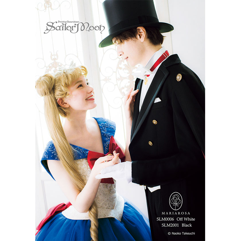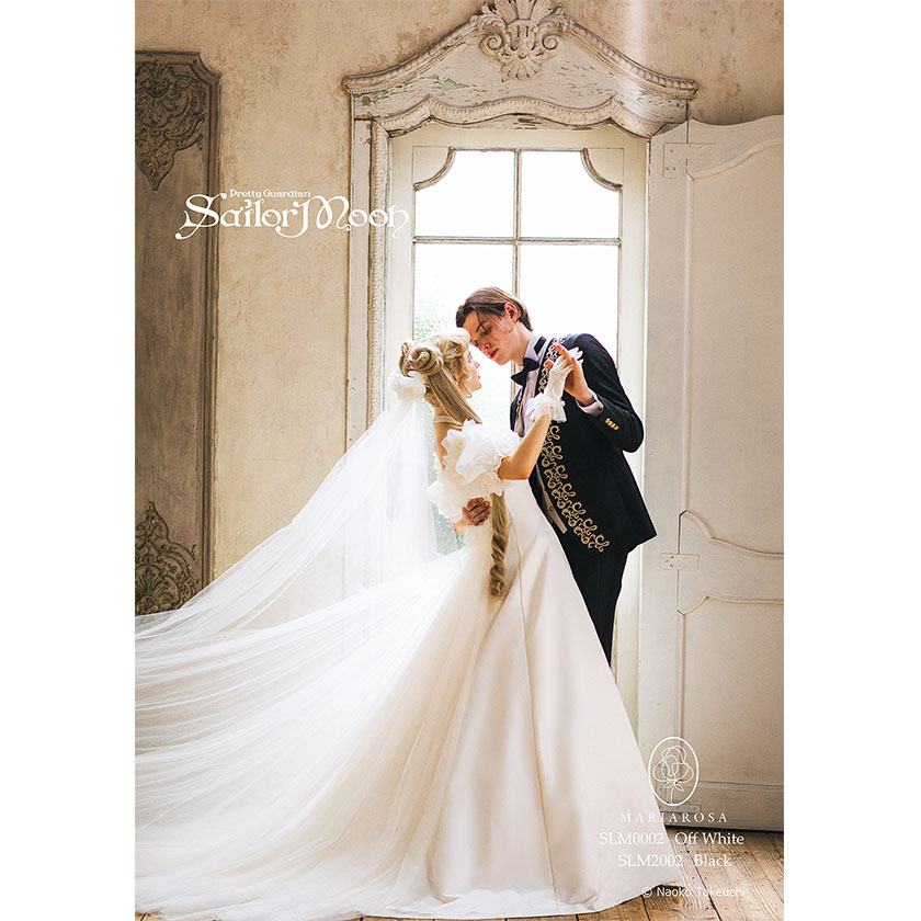 Model ślubny Usagi i Mamoru - wzorowany na strojach ślubnych Usagi i Mamoru z ostatniego rozdziału mangi; suknia jest z jedwabiu i tiulu w kolorze złamanej bieli, a garnitur jest czarny i ozdobiony jest złotym haftem; góra sukni i welon ozdobione różami