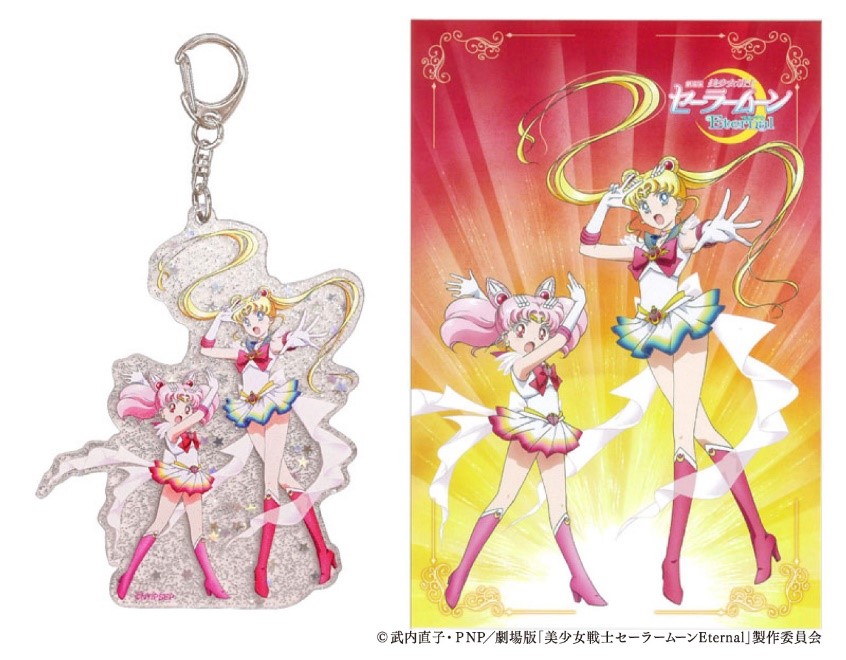 Zestaw brelok i pocztówka z Super Sailor Moon i Super Sailor Chibi Moon - 1210 jenów (ok. 43 zł).