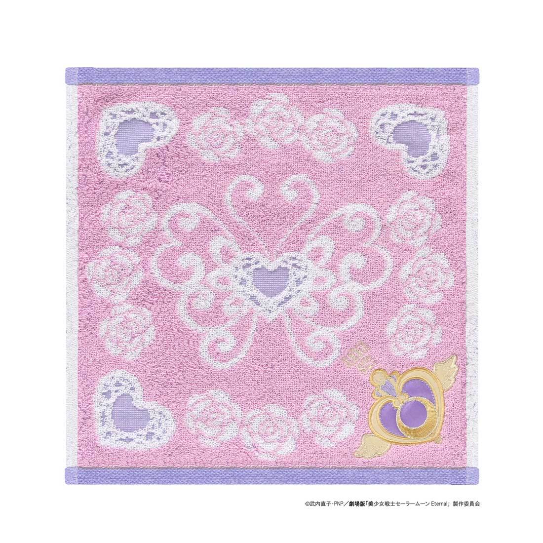 Chusteczki-ręczniki - małe ręczniki wielkości 25 x 25 cm; do wyboru 6 wzorów, 3 w różnych kolorach z sylwetką Super Sailor Moon oraz 3 w różnych kolorach z motylami; w rogach mają naszywki z Luną lub z broszką Crisis Moon; 1100 jenów za sztukę (ok. 42