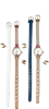 W każdym zestawie dostępne są dwa paski, z metalowej siatki oraz ze skóry z wytłoczonymi znakami planet. Zegarek inner senshi ma biały skórzany pasek oraz metalowy w kolorze różowego złota, a outer senshi granatowy skórzany pasek i