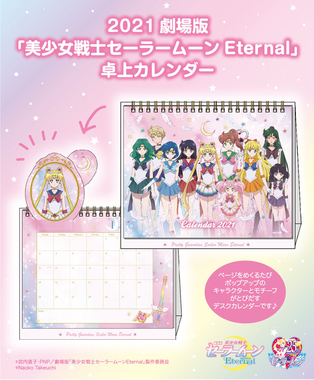 Na 2021 rok pojawi się kalendarz biurkowy z postaciami z filmu Sailor Moon Eternal. W sprzedaży pojawi się w połowie listopada w Sailor Moon Store, Sailor Moon Store Petit oraz Pretty Guardians. Będzie kosztował 1980 jenów (ok. 75 zł).