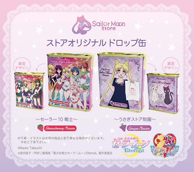 W Sailor Moon Store ponownie pojawią się puszki z cukierkami. Do wyboru są dwa wzory puszek, z Usagi po jednej stronie i kotami po drugiej oraz inner senshi po jednej stronie i outer senshi po drugiej. W puszce z Usagi i kotami są cukierki o smaku winogronowym,