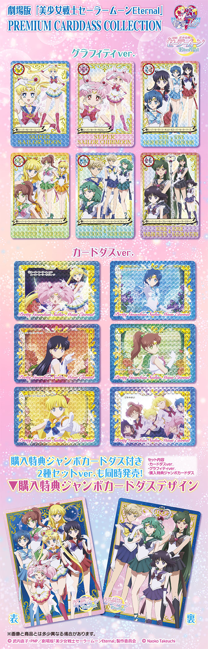 kartę Jumbo Carddass, wielkości 148 x 210 mm. Po jednej stronie znajdują się inner senshi, a po drugiej outer senshi. Karty będą sprzedawane od 8 stycznia 2021.