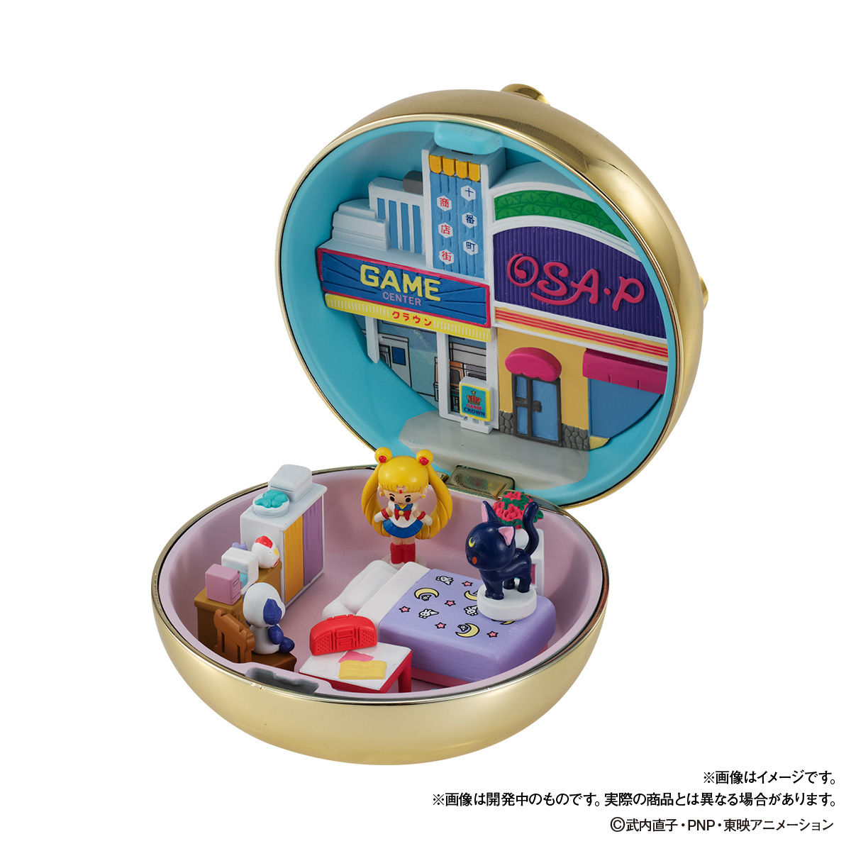 należącego do rodziny Naru, OSA-P. W zestawie są malutkie figurki Sailor Moon i Luny (21 mm i 17 mm wysokości). Broszka ma wielkość 710 mm. Przedsprzedaż rozpocznie się 12 listopada i będzie trwać do 30 listopada, a wysyłka nastąpi