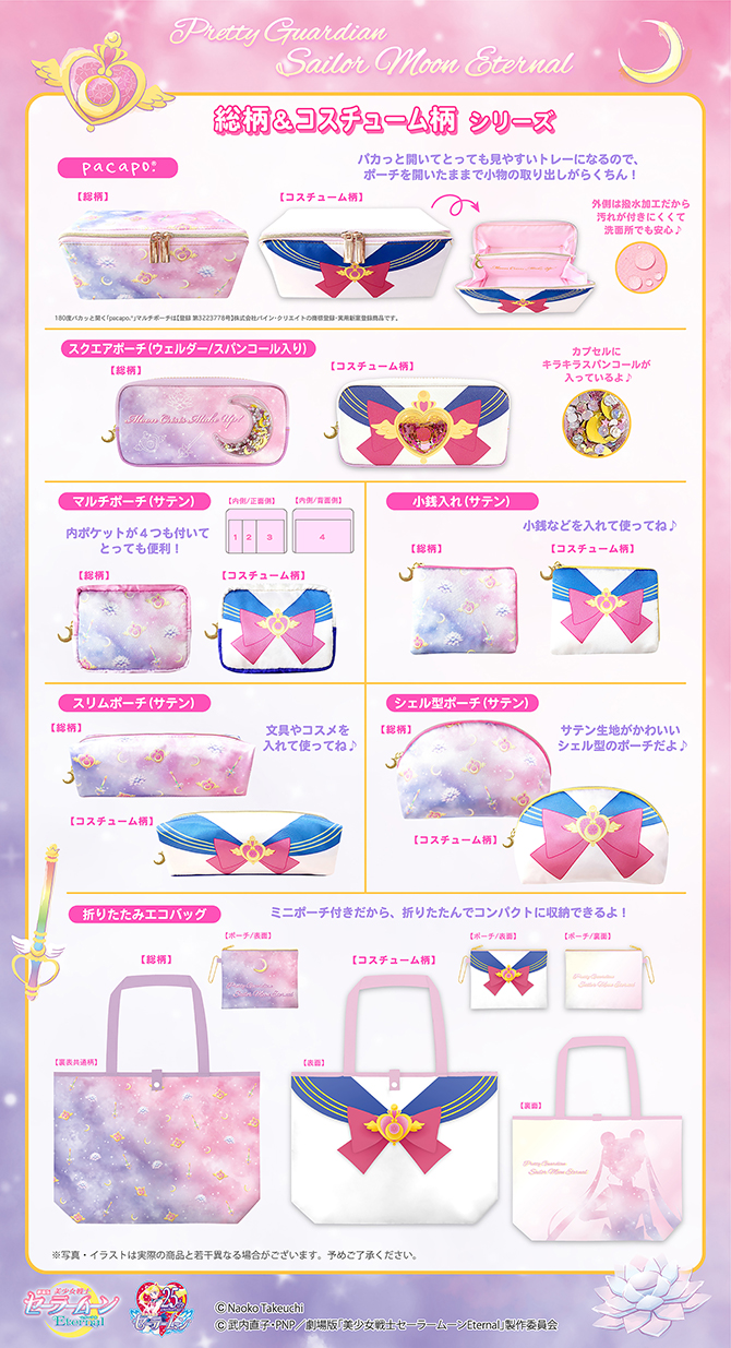Różne drobne gadżety z grafiką Sailor Moon Eternal. Sprzedaż przewidziana na styczeń/luty 2021.