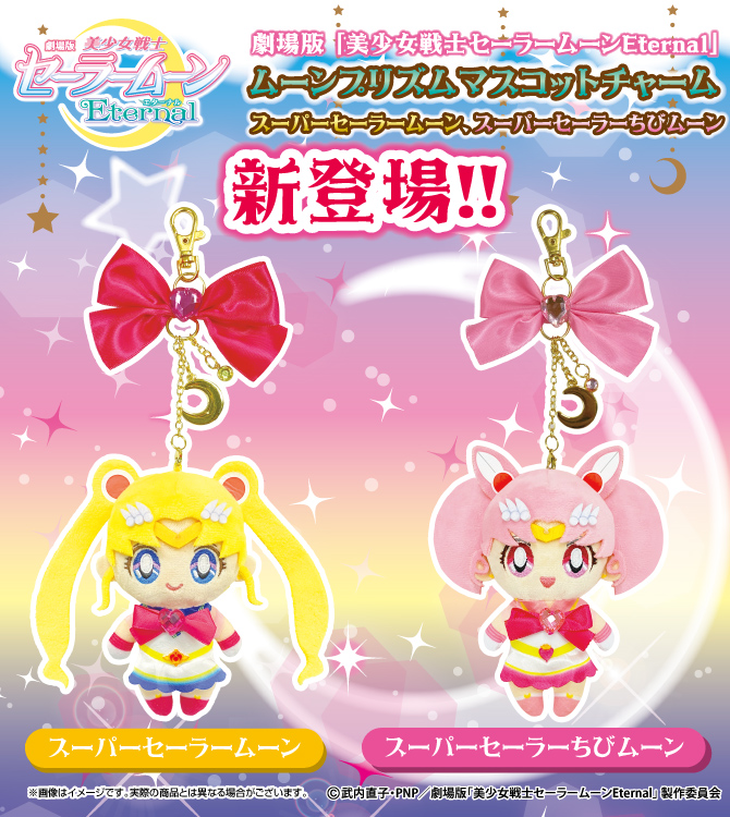 Do filmu Sailor Moon Eternal zapowiedziano zawieszki do toreb w formie maskotek Super Sailor Moon i Super Sailor Chibi Moon. Maskotki mają wysokość 10 cm, a zawieszki ozdobione są dodatkowo kokardą, półksiężycem i kryształkiem. Od stycznia 2021 będą sprzedawane