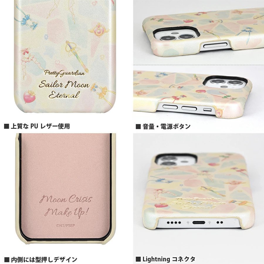PU Leather Case - etui na iPhony ze sztucznej wegańskiej skóry z lekkim połyskiem; po wewnętrznej stronie wytłoczony jest napis Moon Crisis Make Up; dostępne wersje na modele iPhone 12mini/12/12Pro oraz IPhone SE drugiej generacji,
