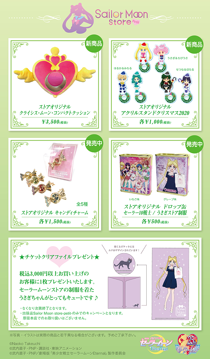 W Sailor Moon Store pojawią się akrylowe ozdoby świąteczne. Do kupienia będą trzy zestawy dwóch postaci w strojach mikołajowych: Haruka i Michiru, Usagi i Chibiusa oraz Setsuna i Hotaru. Sprzedawane będą od grudnia w Sailor Moon Store, Sailor Moon Store