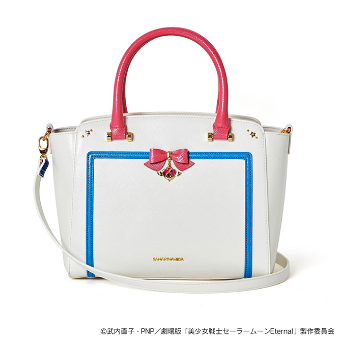 Torby - torby do ręki i z paskiem na ramię inspirowane inner senshi; zdobienia imitujące kołnierzyk oraz ozdoby z kokardami; mieszczą format A4; 19 580 jenów (ok. 730 zł) za sztukę.