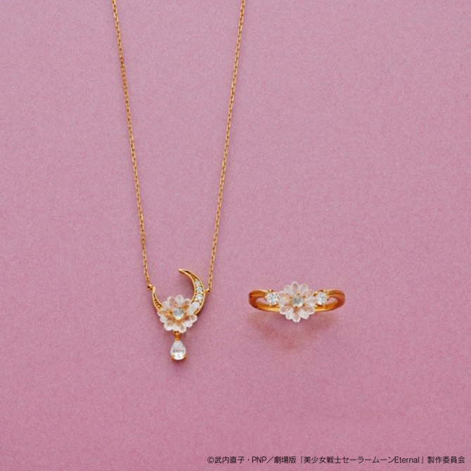 Super Sailor Chibi Moon & Helios Necklace / Ring - naszyjnik i pierścionek inspirowane Super Sailor Chibi Moon i Heliosem; naszyjnik kosztuje 20 900 jenów (ok. 780 zł), a pierścionek 18 700 jenów (ok. 698 zł).