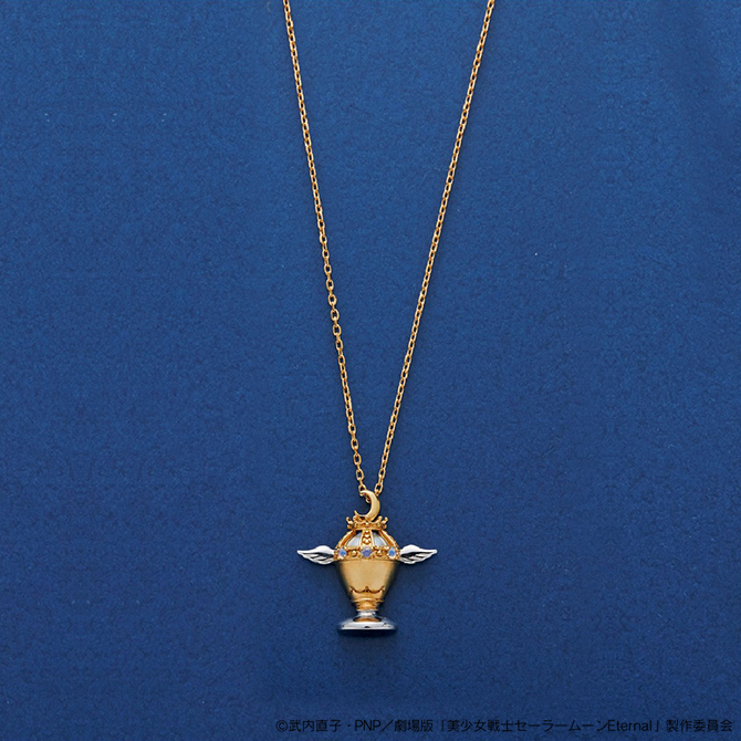 z pałeczką Moon Kaleidoscope i Świętym Graalem; pałeczka wysadzana jest 7 kryształkami w różnych kolorach; naszyjniki są łańcuszkach 60 cm; naszyjnik z pałeczką kosztuje 26 400 jenów (ok. 985 zł), a ze Świętym Graalem 28 600 jenów