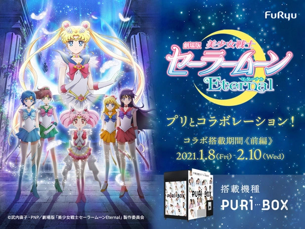 PURi BOX to automaty do robienia zdjęć, które drukują zdjęcia jako naklejki. Od jutra do 10 lutego, jako ramki do zdjęć będzie można wybrać ramki z każdą z inner senshi lub Sailor Chibi Moon. Dodatkowo podczas robienia zdjęć w tle będzie leciała piosenka