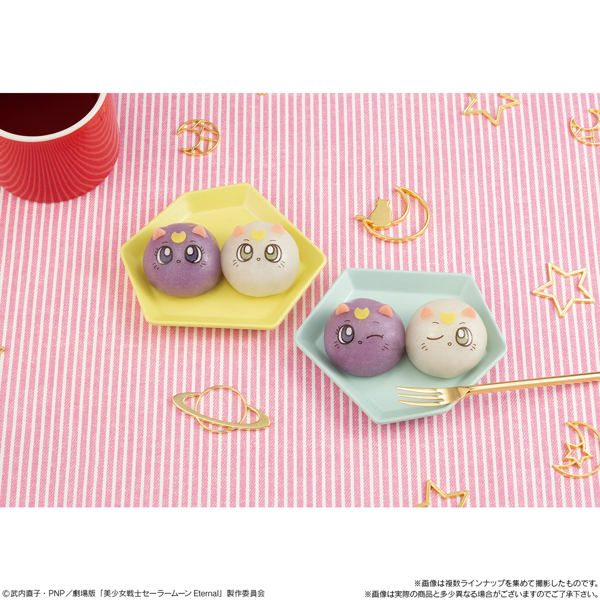 Luna i Artemis pojawią się jako japońskie słodycze mochi. Luna będzie o smaku kremu budyniowego, a Artemis będzie mieć smak klonowy. Do wyboru są kulki z dwoma minami: z otwartymi oczami oraz z jednym mrugającym. W sprzedaży pojawią się 16 lutego w cenie