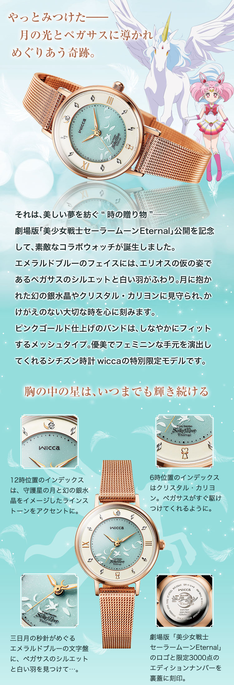 We współpracy z wicca wyjdzie nowy model zegarka inspirowany filmem Eternal. Tarcza ma niebieski kolor z białymi piórkami i sylwetką Pegaza. W miejscu godziny 12 znajduje się półksiężyc i kryształek reprezentujący Srebrny Kryształ Iluzji, a w miejscu
