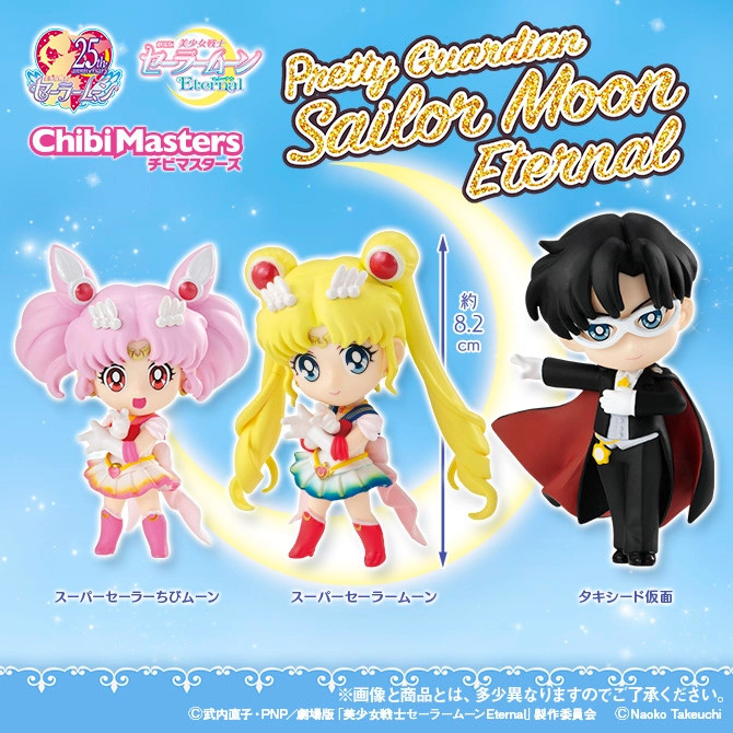 Figurki Super Sailor Chibi Moon, Super Sailor Moon oraz Tuxedo Kamen z serii ChibiMasters pojawią się w automatach gashapon w czwartym tygodniu kwietnia.