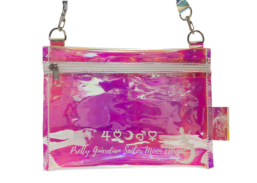 42 zł). Torebka na ramię - różowa; błyszcząca; przezroczysta; wymiary to 250 x 180 mm; 1800 jenów (ok. 63 zł). Kubek termiczny - ozdobiony wzorem z sylwetkami inner senshi; pojemność 350 ml; 1500 jenów (ok. 53 zł).