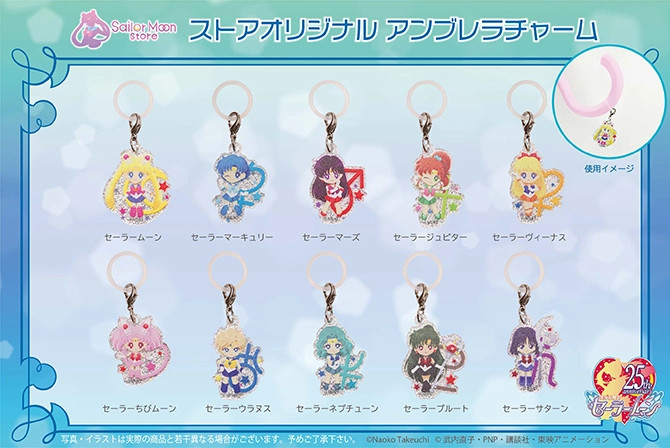 W czerwcu w Sailor Moon Store i Pretty Guardians pojawi się 10 zawieszek do parasoli. Na każdej zawieszce pojawia się inna wojowniczka w wersji SD. Gumowy pierścień można zdjąć i używać zawieszek również jako akcesoria do innych rzeczy. Cena za sztukę