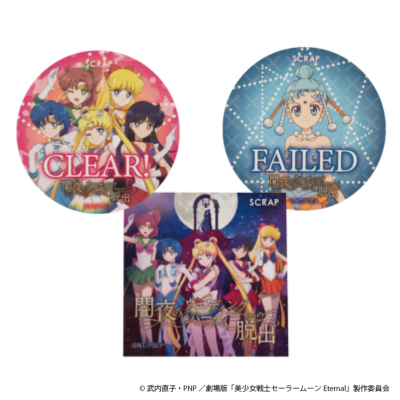 Usagi i jeden z Chibiusą; 1100 jenów (ok. 38 zł). Przypinki - zestaw dwóch sztuk, jedna z Usagi i jedna z Chibiusą; wielkości 56 mm; powłoka holograficzna; 880 jenów (ok. 30 zł).