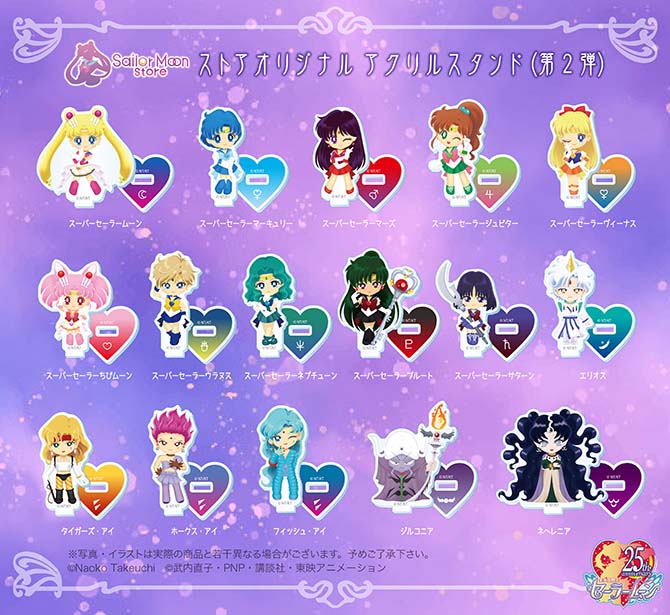 Również w Sailor Moon Store i Pretty Guardians pojawi się drugi zestaw akrylowych ozdób z postaciami w wersji SD. W tym zestawie do uzbierania jest 16 postaci: 10 wojowniczek, Helios, Amazon Trio, Zirconia oraz Nehelenia. Ozdoby sprzedawane będą losowo w nieprzezroczystych opakowaniach. Cena za sztukę to 660 jenów (ok. 23 zł). W sprzedaży będą dostępne od 5 sierpnia. W fanklubie pojawi się ograniczona liczba kompletnych zestawów.