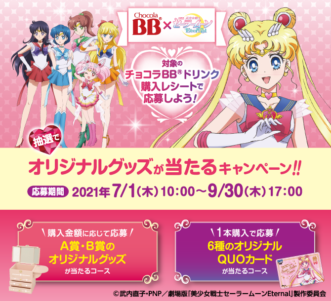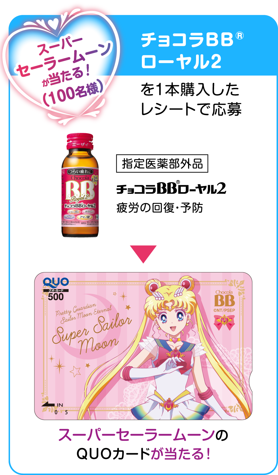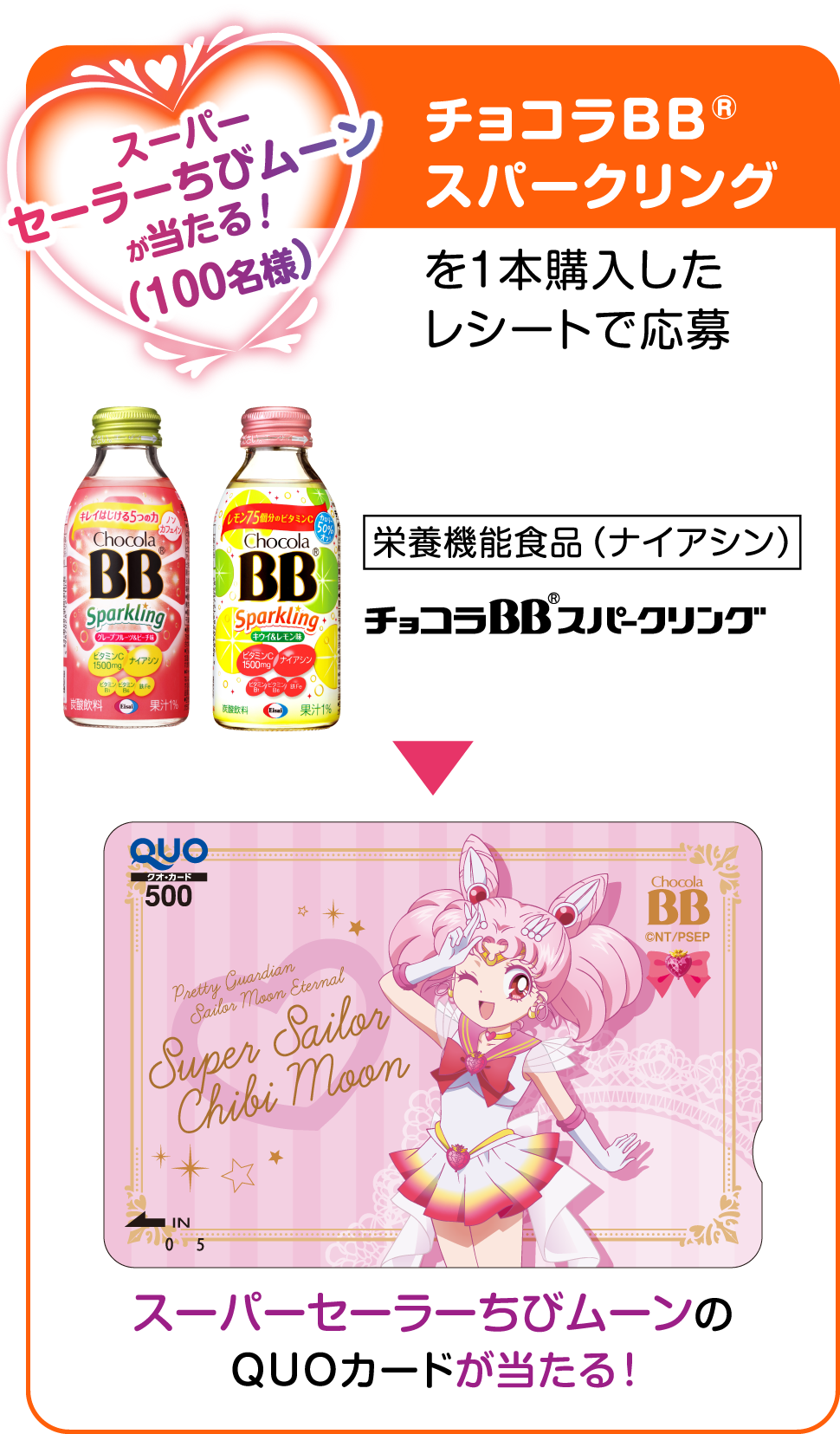 2. Drugi sposób wzięcia udziału w kampanii to zakup jednego konkretnego produktu. Tutaj do wygrania są karty przedpłacone QUO o wartości 500 jenów. Karty mają grafikę z wojowniczkami, do wygrania jest 6 wzorów, 5 z inner senshi i 1 z Sailor Chibi Moon.