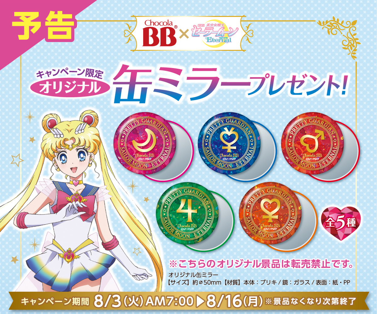 W zapowiedzianej już wcześniej kampanii Family Martu we współpracy z Chocola BB pojawiły się nowe nagrody. Od 3 sierpnia, osoby, które kupią wyznaczone w kampanii produkty, dostaną na miejscu lusterko. Lusterka są wielkości 5 cm i mają z tyłu znaki planet inner senshi. Do uzbierania 5 wzorów. Ilość lusterek jest ograniczona, więc kto pierwszy ten lepszy.