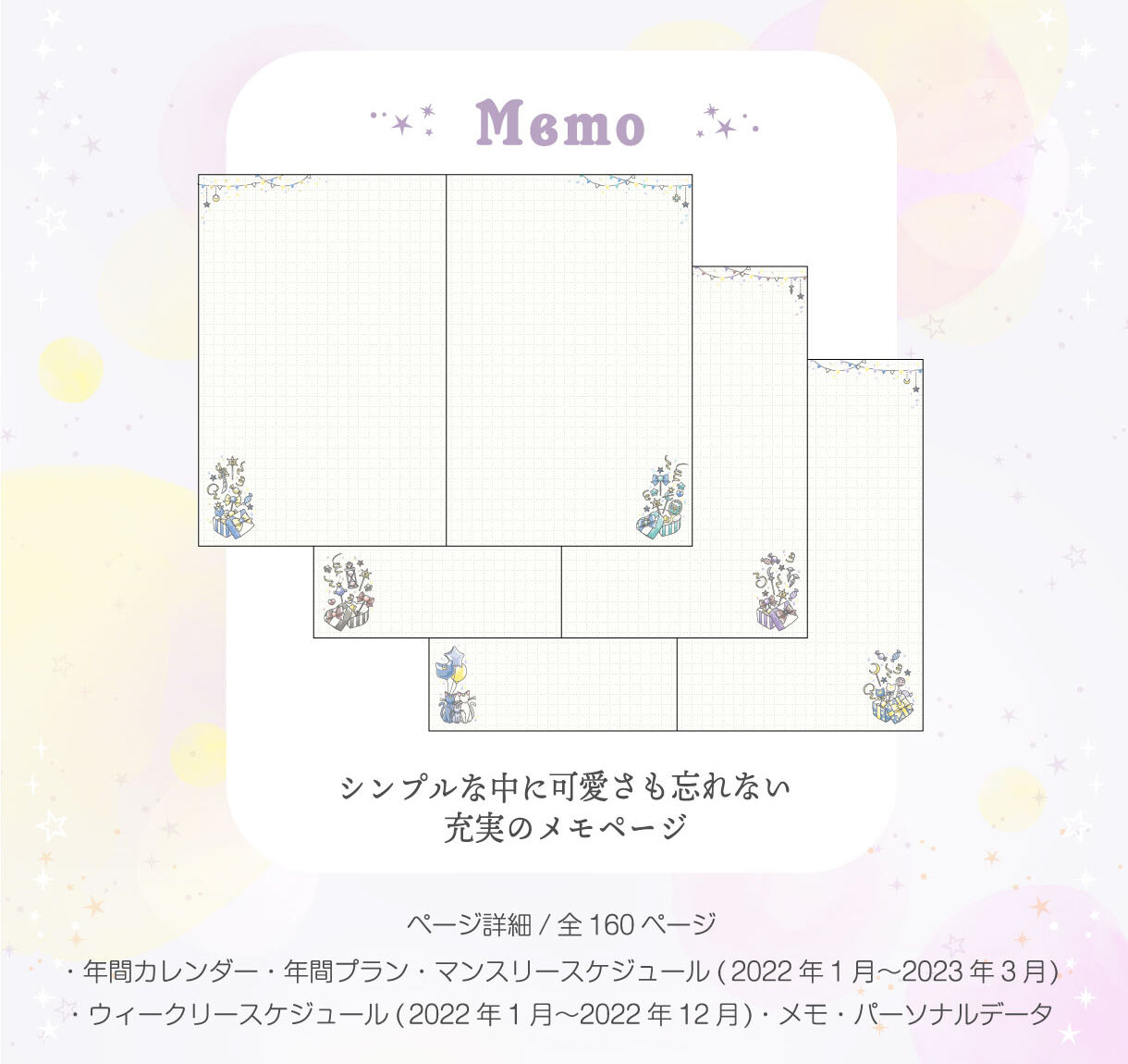 Zapowiedziano kolejne terminarze na 2022 rok. Do wyboru będą dwa wzory, Compact w kolorze szarym z różnymi broszkami do przemiany na okładce oraz Star w kolorze granatowym z girlandami. W zestawie z terminarzem będą też 12-centymetrowa linijka oraz 3 spinacze, jeden duży i dwa małe. Terminarze mają wymiary 145 x 200 x 25 mm, linijka 28,5 x 160 mm, duży spinacz 35 x 40 mm, a mały 25 x 28 mm. Linijka i spinacze ozdobione są kotami i kokardami. Terminarze mają format B6 i liczą po 160 stron. Kalendarz obejmuje okres od stycznia 2022 do marca 2023. Przedsprzedaż rozpoczyna się dzisiaj, a wysyłka nastąpi w listopadzie. Cena za sztukę to 4400 jenów (ok. 154 zł).