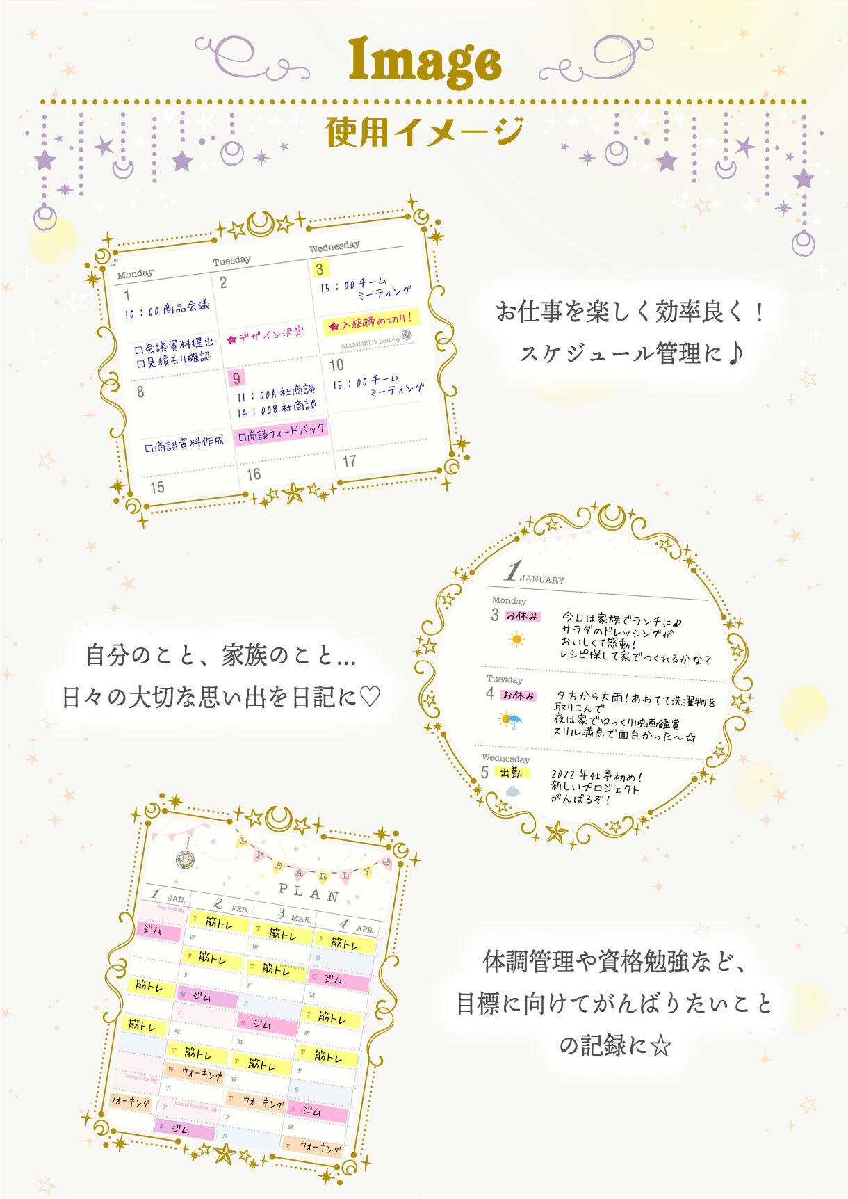 W przedsprzedaży pod koniec sierpnia pojawią się jeszcze kolejne dwa terminarze. Te jako ilustracje ozdobne będą posiadać rysunki mangowe. Okładki będą dostępne w dwóch kolorach, różowego złota i brązu. Na okładkach będzie ozdoba w postaci berła Spiral Heart Moon Rod. W zestawie z terminarzem również będą 12-centymetrowa linijka oraz 3 spinacze. Cena za sztukę to 6380 jenów (ok. 224 zł). Wysyłka nastąpi w grudniu.