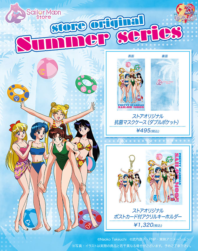 W Sailor Moon Store i Pretty Guardians pojawią się w sprzedaży artykuły z dziewczynami w strojach kąpielowych. Będą to antybakteryjne etui na maseczkę z dwoma przegródkami oraz zestaw zawierający akrylowy brelok i pocztówkę. Etui kosztuje 495 jenów (ok. 17 zł), a zestaw 1320 jenów (ok. 45 zł). W sprzedaży będą dostępne pod koniec lipca.