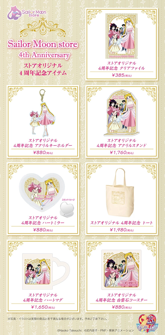 Z okazji czwartej rocznicy oficjalnego sklepu pojawią się gadżety z bohaterami serii w strojach galowych. Artykuły będą dostępne w Sailor Moon Store i Pretty Guardians we wrześniu.