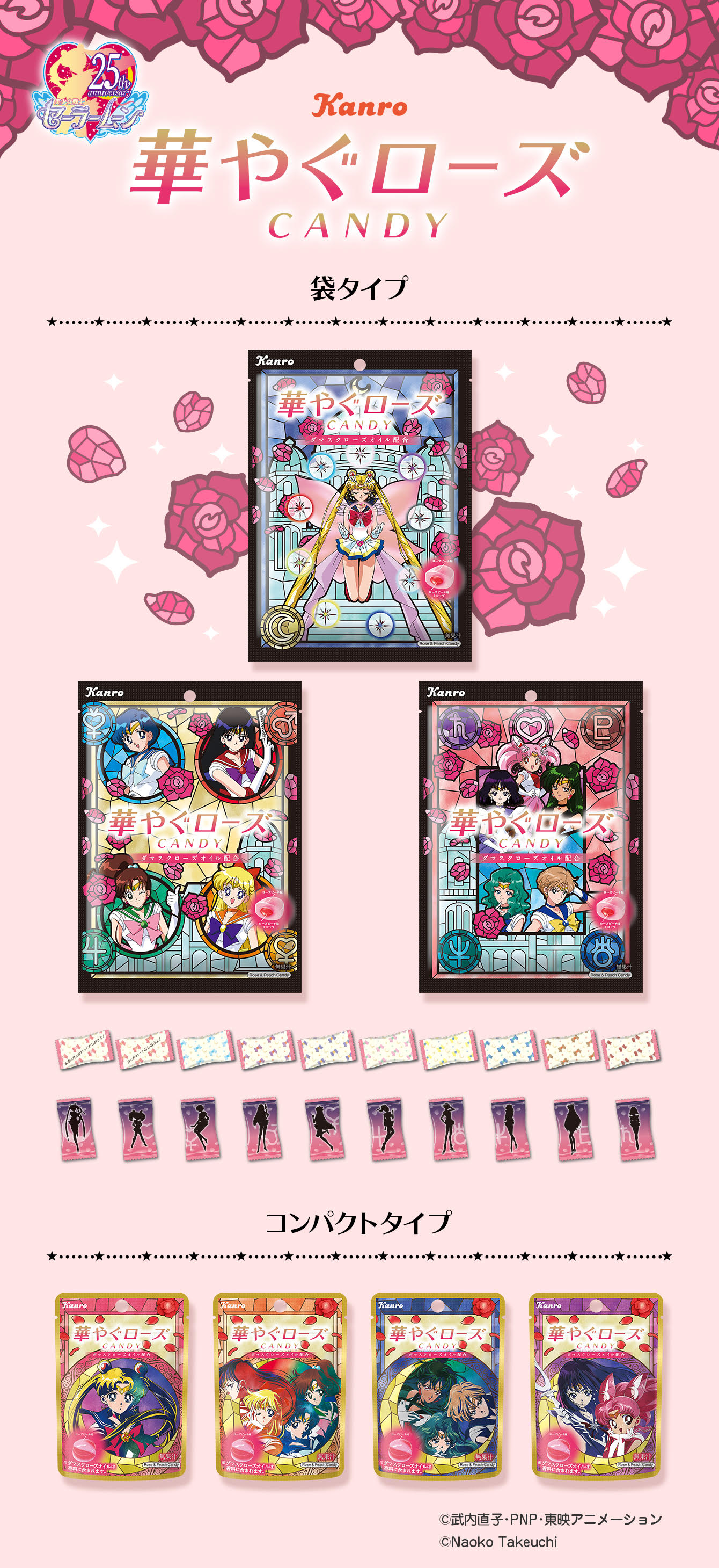 Wojowniczki pojawią się na opakowaniach aromatyzowanych cukierków Hanayagu Rose Candy. Paczki 55 g będą mieć trzy wzory sailorkowe, a opakowania 26 g cztery wzory. W większych opakowaniach znajduje się 20 indywidualnie zapakowanych cukierków, a każde