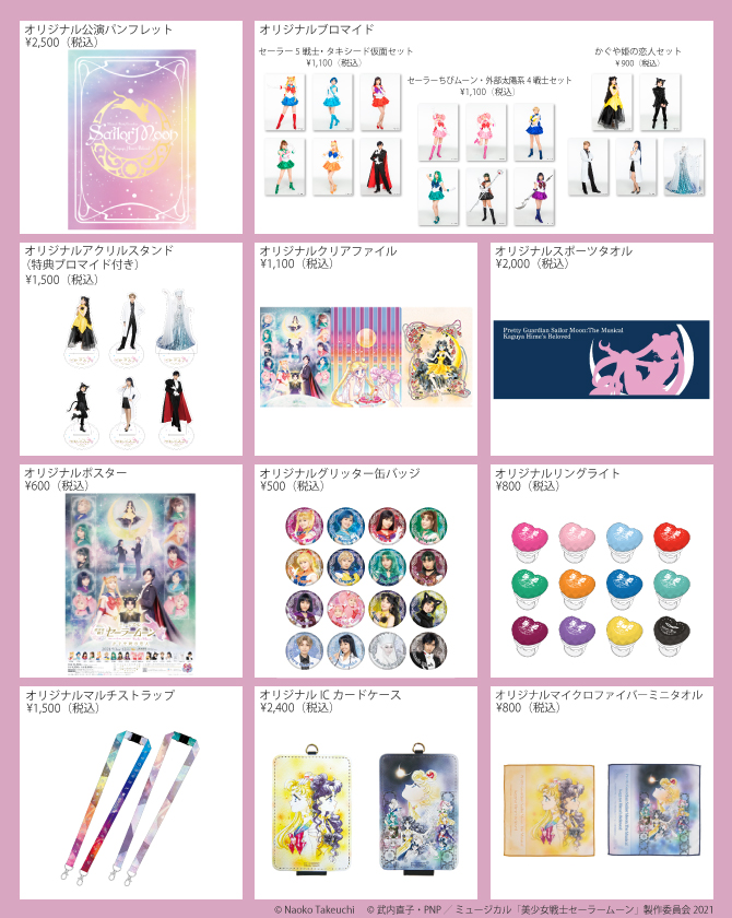 Pokazano gadżety, które będą sprzedawane w trakcie wystawiania musicalu od 3 września. Tym razem gadżety pojawią się w wybranych sklepach (Sailor Moon Store i Animate oraz Pretty Guardians) i będzie je można zamówić od 24 sierpnia.