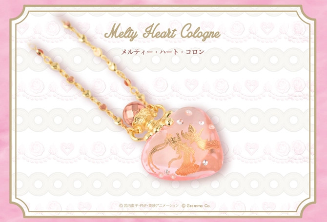 Melty Heart Cologne - naszyjnik z motywem buteleczki perfum; z przodu nadruk z Księżniczkami; zamknięcie buteleczki ma symbolizować Srebrny Kryształ; 27 500 jenów (ok. 963 zł).