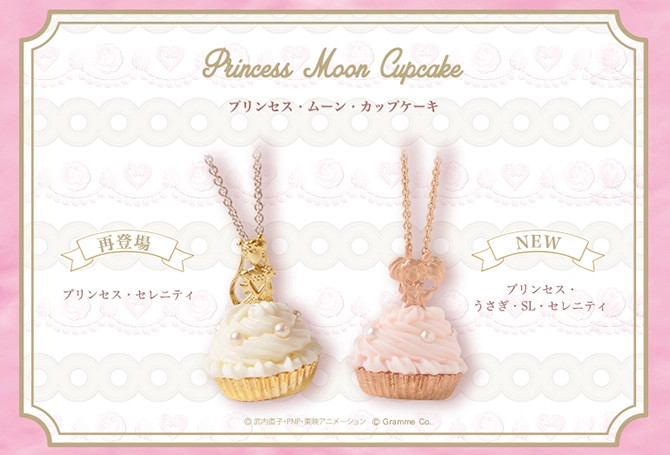 Princess Moon Cupcake - naszyjniki w kształcie babeczek; wersja z Księżniczką Serenity pojawia się ponownie, a wersja z Księżniczką Usagi SL Serenity to nowość; 11 000 jenów (ok. 385 zł) za sztukę.