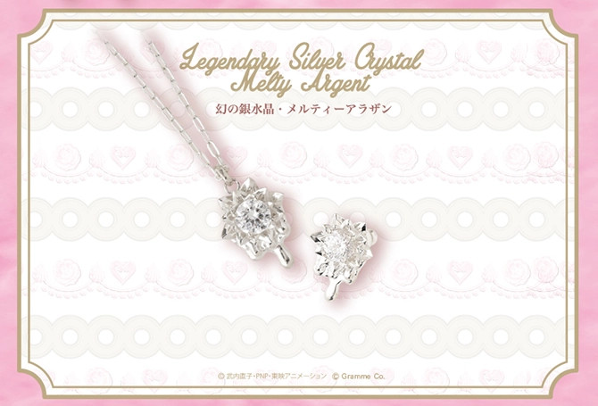 Legendary Silver Crystal Melty Argent - naszyjnik i kolczyki inspirowane Srebrnym Kryształem Iluzji; ozdobione kryształkiem; naszyjnik kosztuje 22 000 jenów (ok. 770 zł), a kolczyki 18 700 jenów (ok. 655 zł).
