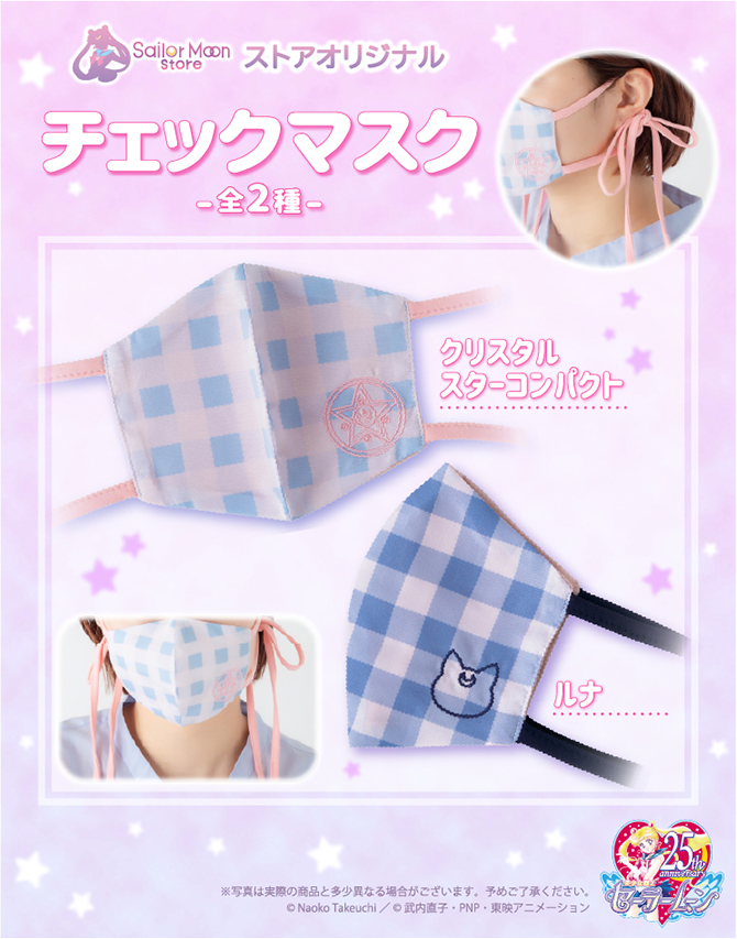 W październiku w Sailor Moon Store i Pretty Guardians pojawią się nowe maseczki ochronne. Do wyboru są dwa wzory w kratkę z wyszywaną broszką Crystal Star lub głową Luny. Maseczkę zakłada się za pomocą wiązanych sznurków. Cena za sztukę to 1650 jenów (ok. 59 zł).